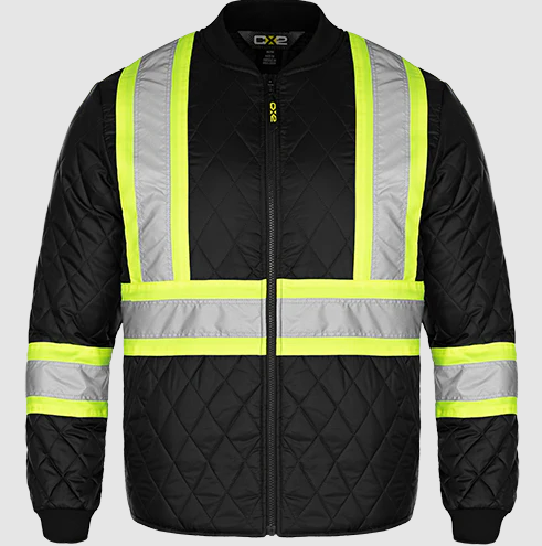- 4” hi-vis contrast band with 2” reflective tape on front and back body and sleeves. Meets CSA standards